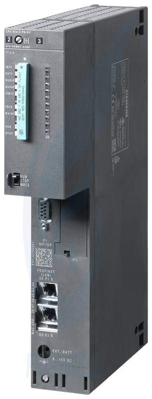 Working memory: 1MB (0.5MB code + 0.5MB data), bit processing speed: 75ns, integrated MPI/DP and ETHERNET/PROFINET interfaces |